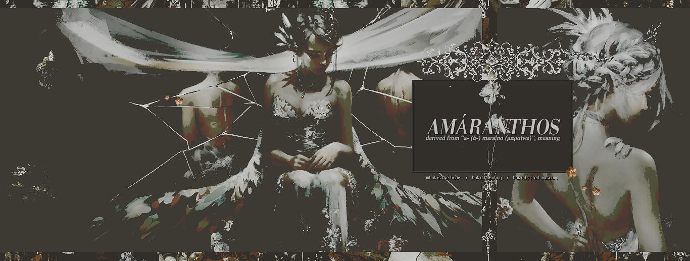 ★ Anthie is more of less the concept of Life given human form .★ She finds herself being a shoujo protagonist a lot and any time she remembers she hates the shit out of it . ★ ★ ★Antheia is the sìol aotrom ( sapling ) of the crann bethadh ( world tree ) that was given free will as a human . The goal of her entire existence is for her to experience every facet of life , over and over again , from every angle . A life where she's the Main Character , a life as a villain , a life as a background character , a life as a recluse and even a lifetime as an empress .She is the world tree given sentience . 𝑹𝑬 : 𝒊𝒏𝒇𝒐𝒓𝒎𝒂𝒕𝒊𝒐𝒏 .